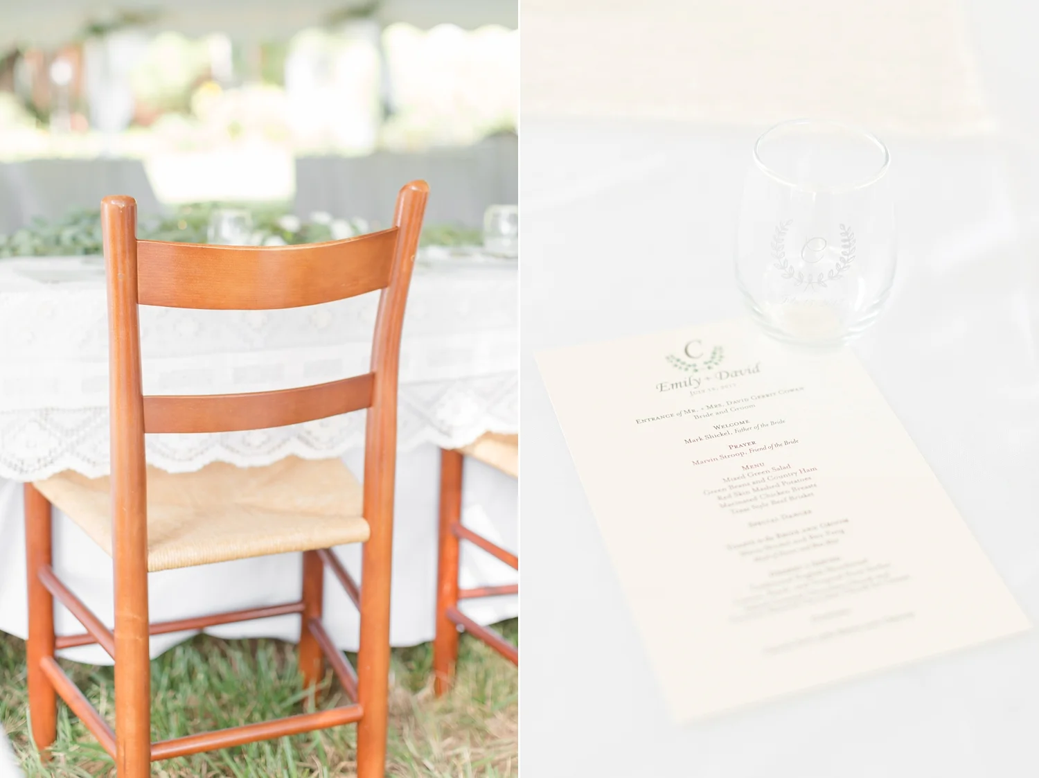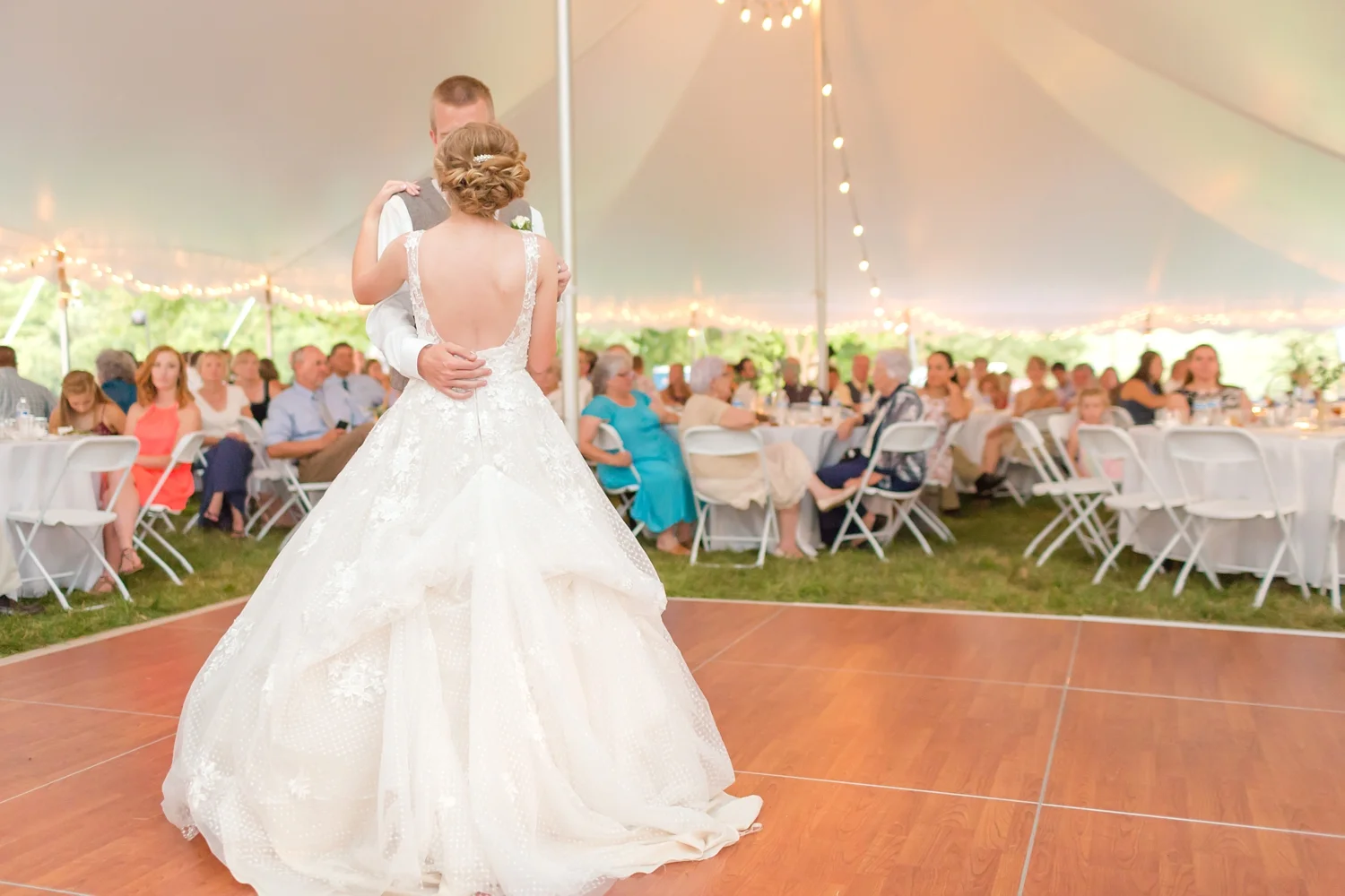 The rustic details were the perfect touch for the wedding. Emily had always dreamed of having a princess ballgown and the dress she chose was the perfect Cinderella dress! They danced the night away under the white tent with lights sparkling above. Everyone had a blast celebrating and showering these two with love.